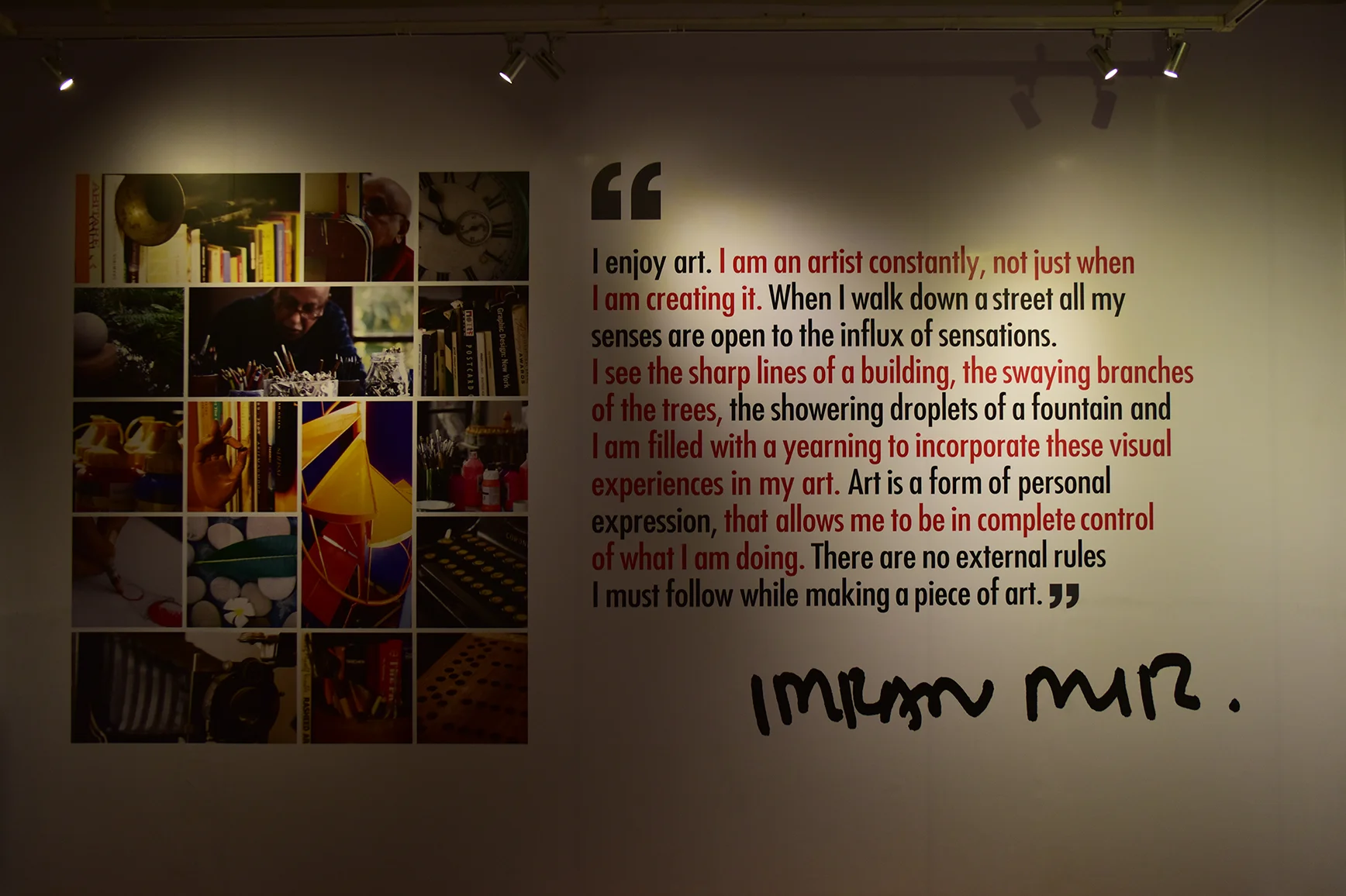 A book launch and memorial for the late Imran Mir took place on Wednesday, 17th December 2014, at his studio house. The memorial marked the publication of his book, What You See Is What You See, and speakers Niilofur Farrukh, Shahid Abdulla, Hameed Haroon, and the artist's son, Kenan Mir, paid tribute to their late friend and colleague.